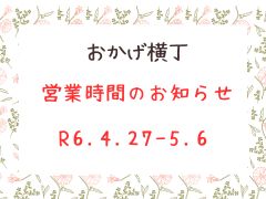 おかげ横丁 ゴールデンウィーク期間の営業時間について【R6.4.27-5.6】