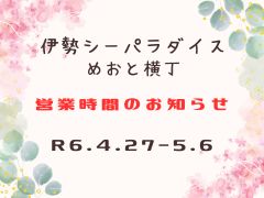 伊勢シーパラダイス ゴールデンウィーク期間の営業時間について【R6.4.27-5.6】