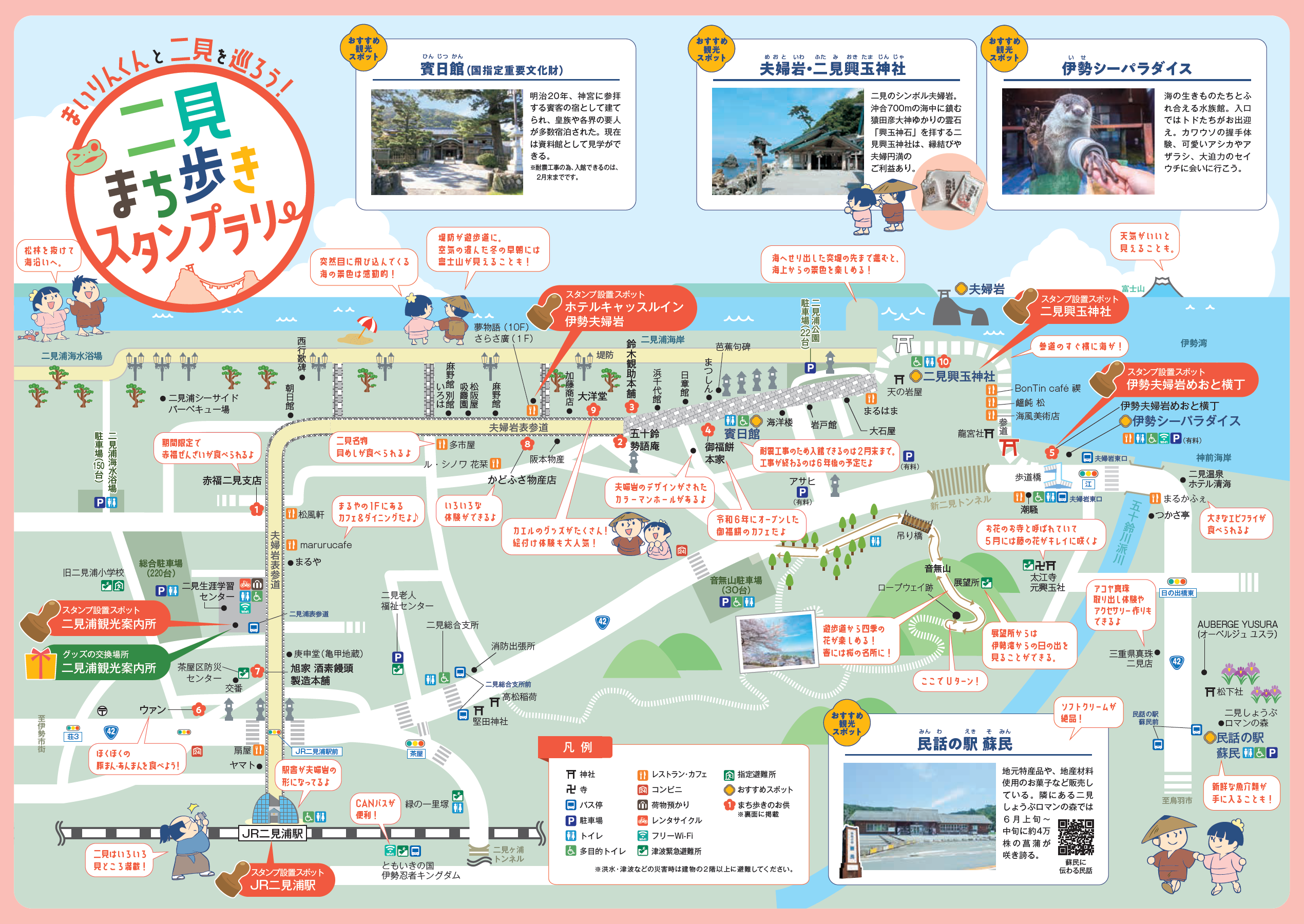 スタンプは二見のまちを巡りながら立ち寄れる全5カ所に設置されています。