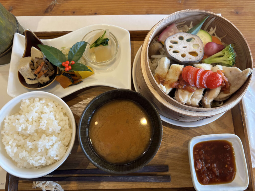 KAGURA SALONでは、この直会の考え方を現代の食体験として楽しめるプログラムを提案しています。「伊な勢」では神饌として用いられる食材や地元食材を活かした直会コース、「ハナカゴメ」では体にやさしい蒸し料理、「おく文」では地元の四季折々の食材を活かした会席を提供。そのほか、直会弁当や、「パン屋 麦」「EKA Gelato」による焼き菓子やジェラートなど、旅の余韻を持ち帰れる品々も揃います。