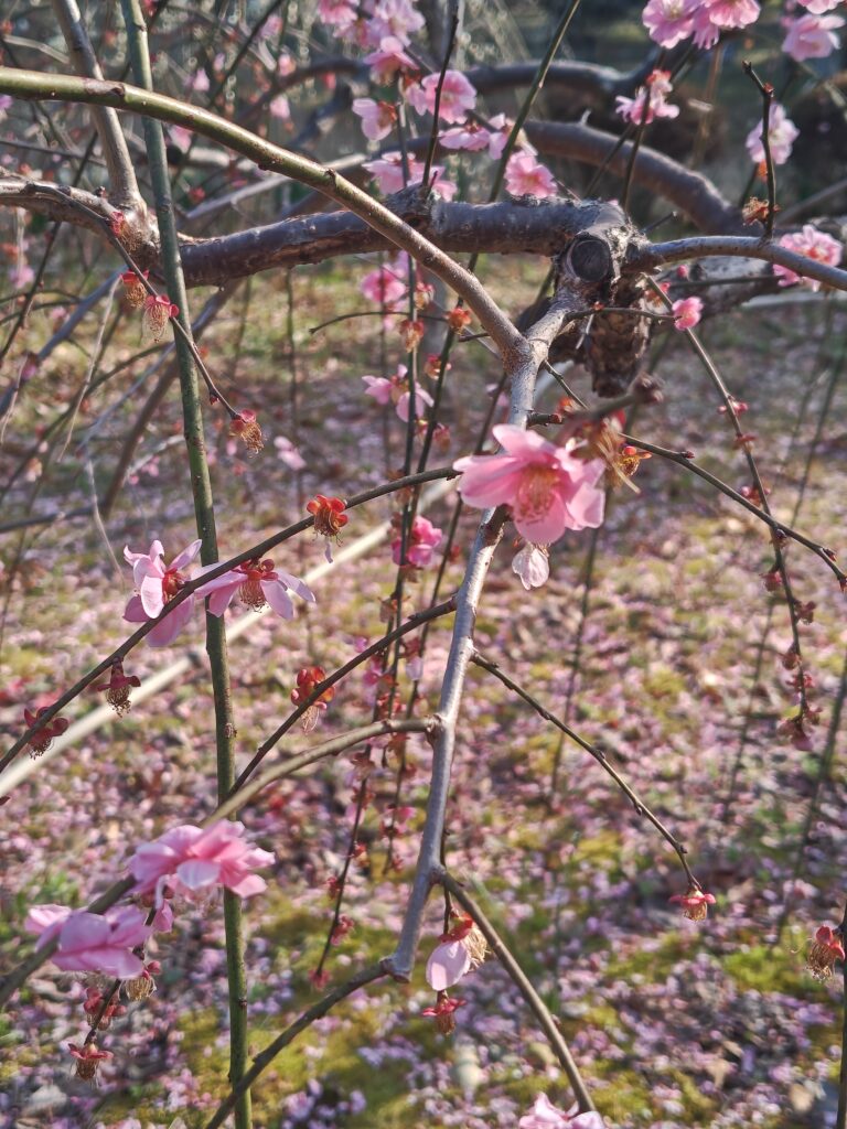 離宮院公園の梅は見頃を過ぎ落下盛んとなっています。今週末には散り果てになりそうです。